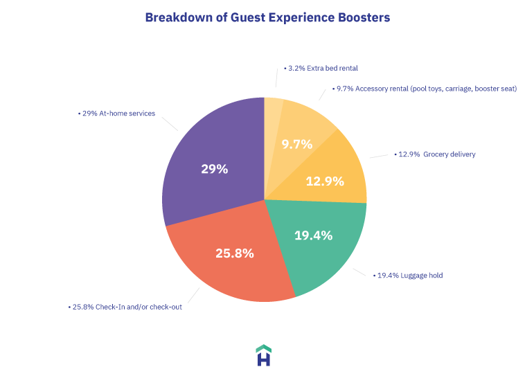 The most variety in upsells we’ve seen is in what we call Guest Experience Boosters, likely in an effort to capitalize on the growing trend of experiential travel. These are all upsells that guests can purchase to enhance their experience when in your rental, or make the stay more enjoyable. Here’s the breakdown: