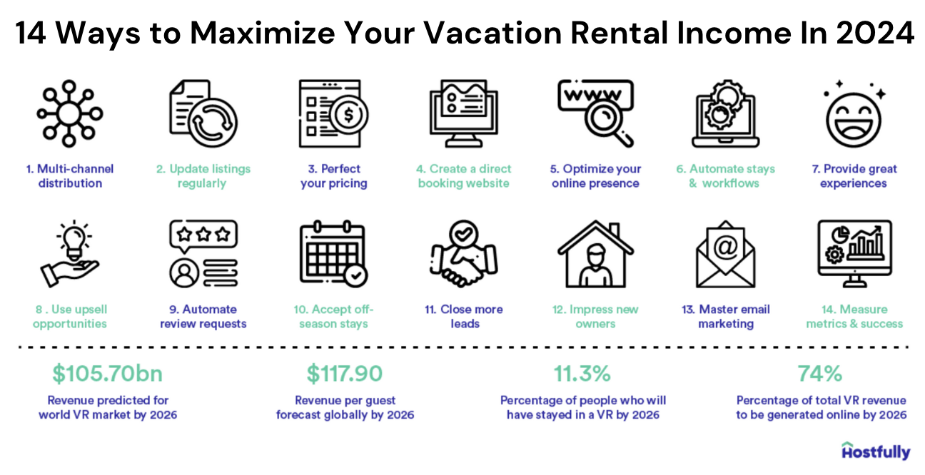 We’ve listed 14 top ways to maximize vacation rental income, including how to: